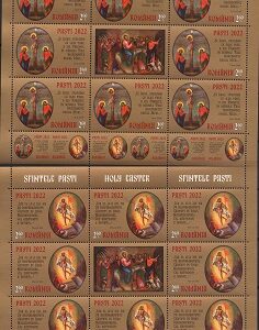 Lp.2361 – Sfintele Pasti 2022 – minicoala de 8 timbre si 1 vinieta nestampilata Michel :