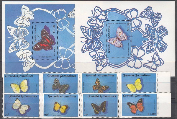 1989-Fluturi – Grenada&Grenadines – nestampilat Michel 1201-1208+bl.176-177