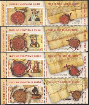 Lp.2248 – Ziua marcii postale romanesti – Peceti ale domnitorilor romani – serie nestampilata cu vinieta Michel 7577-7580zf