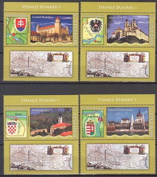 LP.1863e – Stemele Dunarii – serie nestampilata cu vinieta Michel 6429-6432