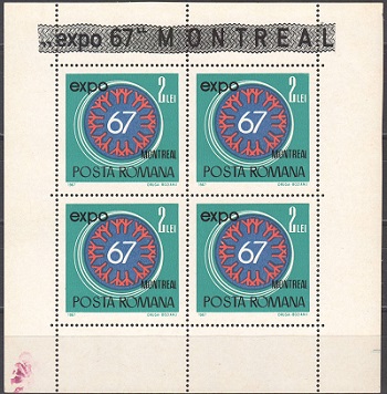 3,99 €Lp.665a – Expo 67 – Montreal – val 2 lei in bloc de 4 – nestampilata