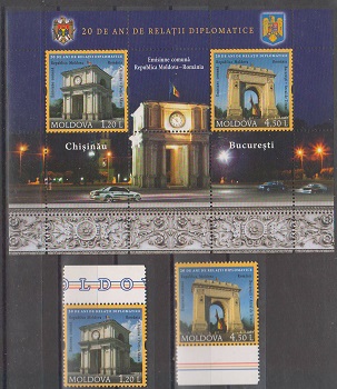 20 ani relatii diplomatice cu Romania – 2011 Michel: 769-770 + bl.58