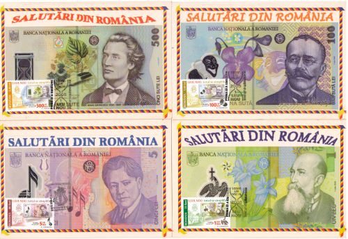 Lp.2043c – Colectia numismatica a Bancii Nationale a Romaniei , Tezaure Monetare I – minicoala de 6 timbre si 6 viniete si 2 tabsuri Michel 6884-6887 klb