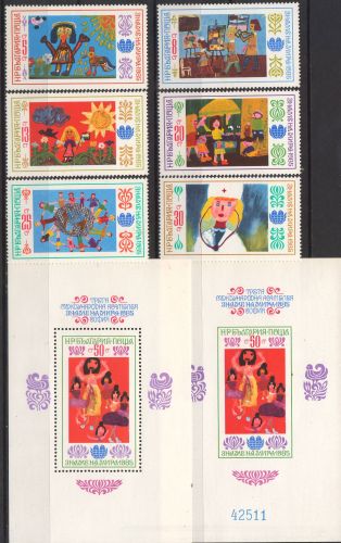 1985-Adunarea Internationala a Copiilor „Stindardul Pacii”, Sofia (III). Michel 3350-3355+bloc 153A+153B – nestampilat