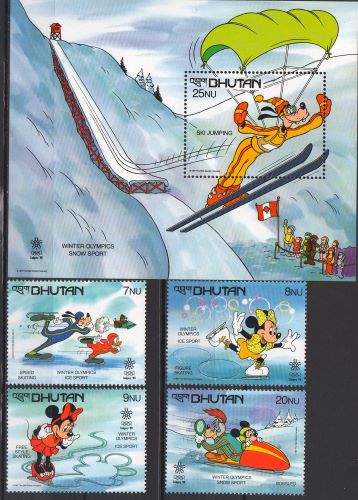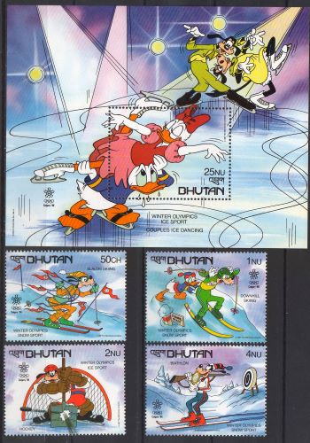 Bhutan-1988-Jocurile Olimpice de iarna, Calgary: personaje Walt Disney.