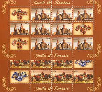 Lp.1810E- Castele din Romania – MINICOALA DE 9 TIMBRE SI 3 VINIETE – nestampilata Michel 6313-6316 klb