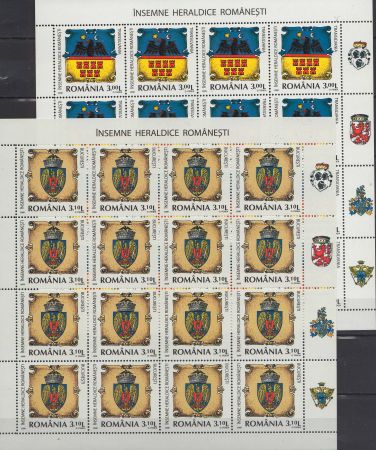 Lp.1816 – Insemne Heraldice Romanesti – minicoala de 16 timbre cu 4 tabsuri nestampilata Michel 6326-6329 klb