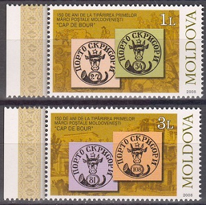 2008 – 150 de ani de la tipărirea primelor mărci poștale moldovenești „Cap de bour”
