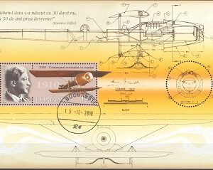 7,55 leiLP.1874 – 2010-Centenarul avionului cu reactie – Coanda 1910 – colita stampilata