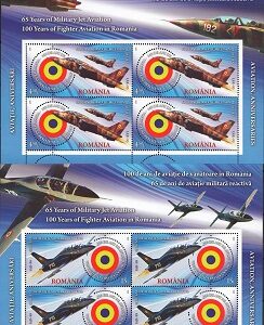 101,25 leiLp.2121c – Aviatia,Aniversari – De la Coanda la F-16 – minicoli de 4 timbre cu manseta ilustrata nestampilat
