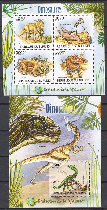 2012-Reptile preistorice. – nestampilat Michel – 2555-2558 + bloc 235