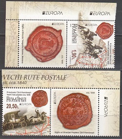 Lp.2280a – Europa 2020 – Vechi rute postale – bloc de 2 serii nestampilat – tip 1 Michel bloc 831I