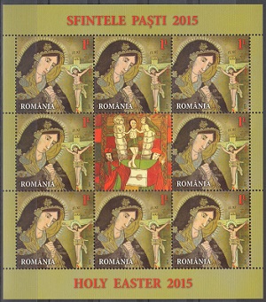 Lp.2059g – Sfintele Pasti 2015 – pereche de minicoali de 4 timbre cu manseta ilustrata M I+MII nestampilate Michel 6936 klbII
